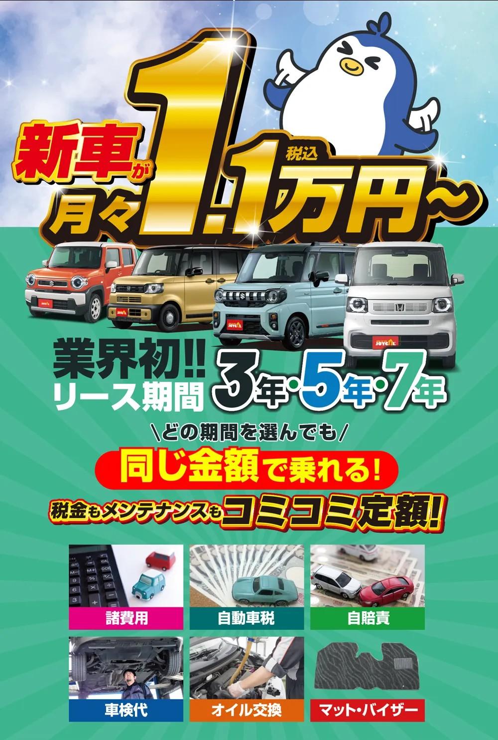 7MAXには、車両代のほかに、車検代、自動車税、オイル点検などの維持費用が含まれるので、突然の出費を考えることがなく家計においても余裕がでてきます。